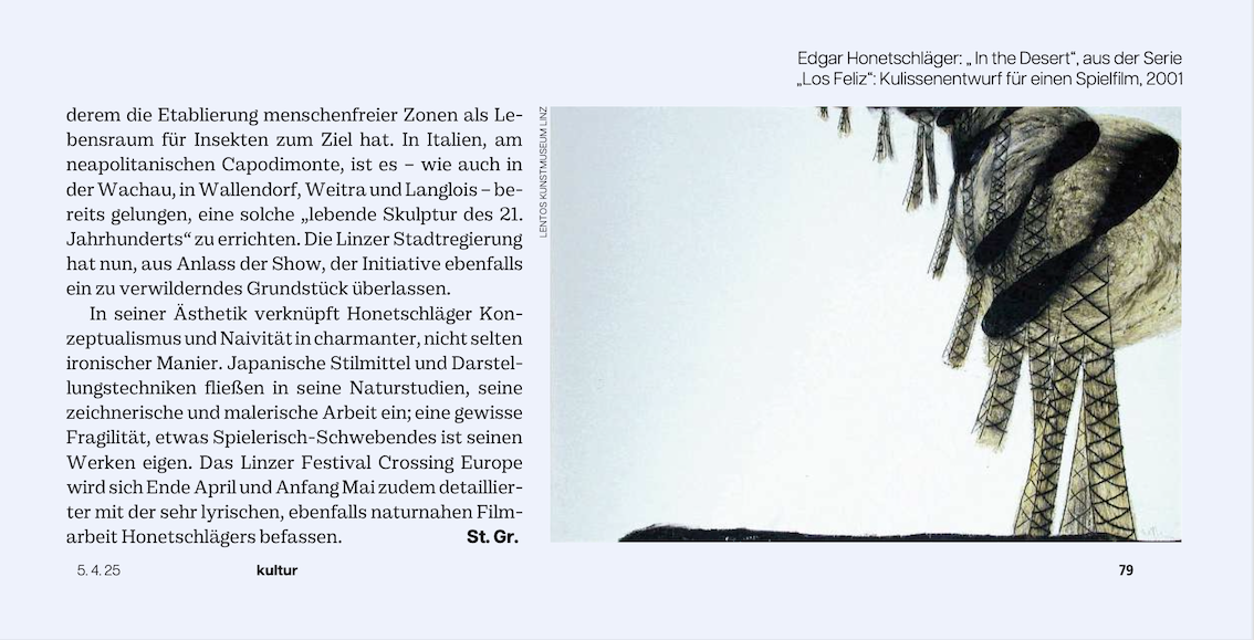 The Crossing Europe Film Festival (29.4. – 4.5.) dedicated a special to Edgar Honetschläger tied to the Personale at the Nordico City Museum Linz.